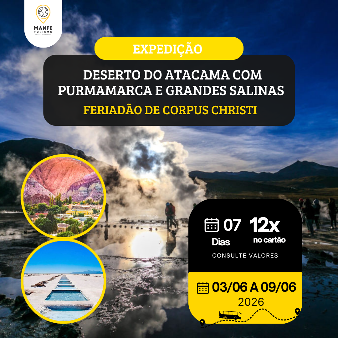 EXPEDIÇÃO DESERTO DO ATACAMA COM PURMAMARCA E GRANDES SALINAS