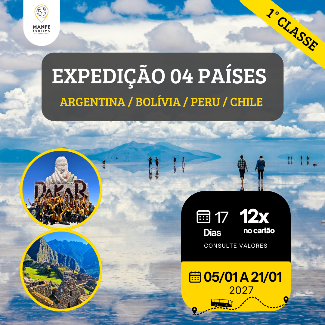 EXPEDIÇÃO 04 PAÍSES - RODOVIÁRIO - 01° CLASSE – BOLÍVIA / PERU / CHILE / ARGENTINA.